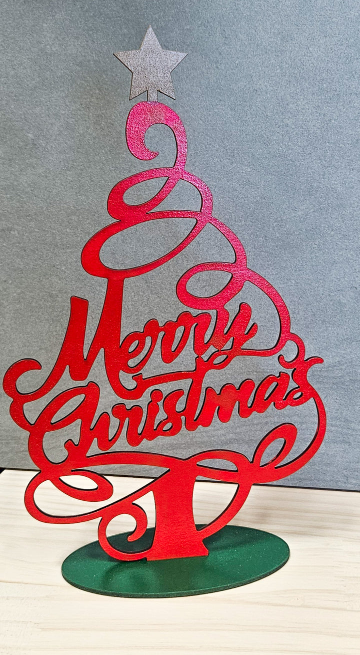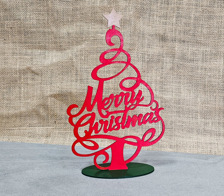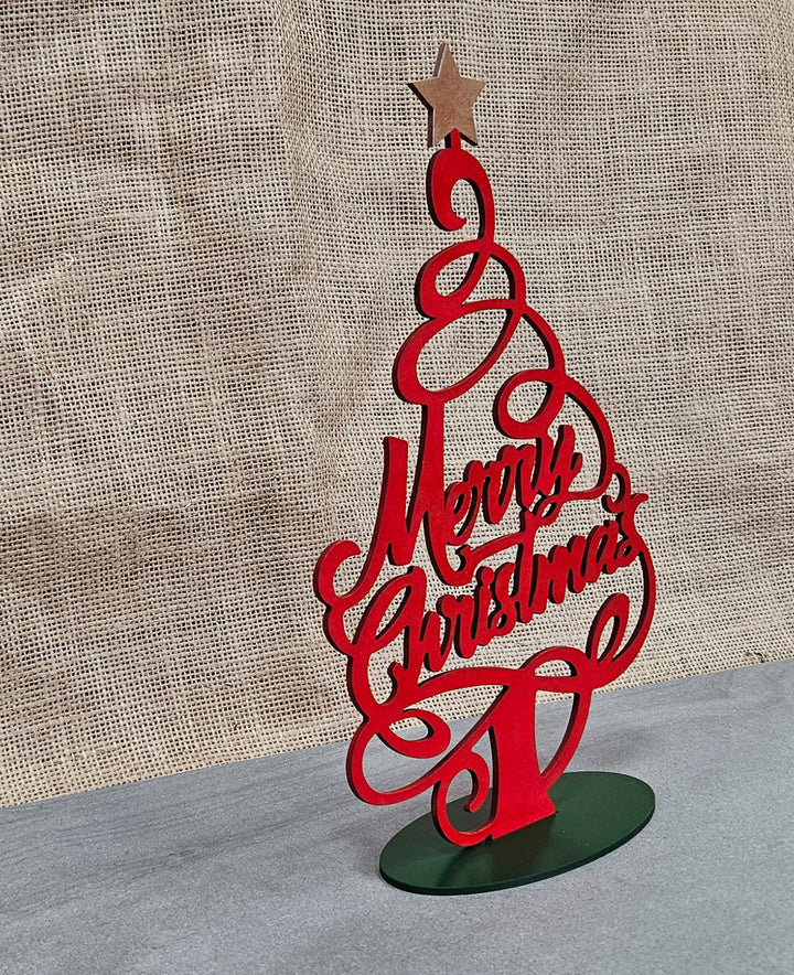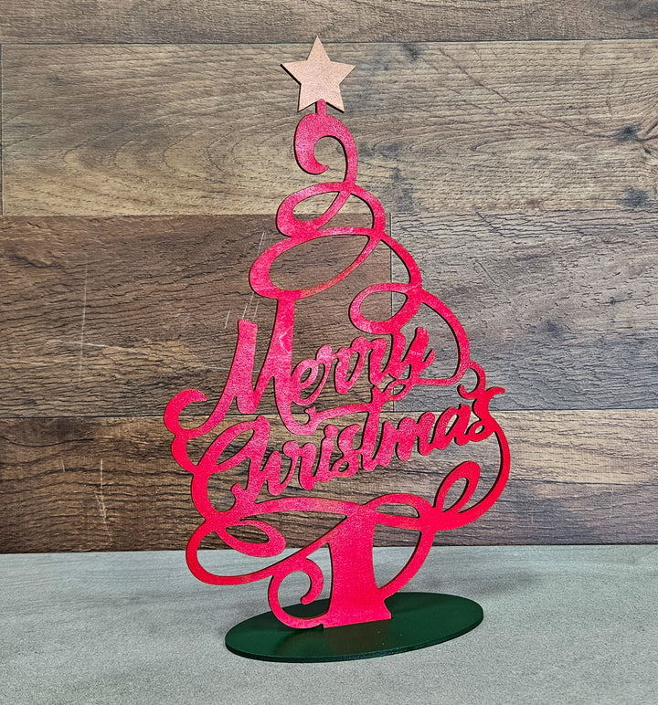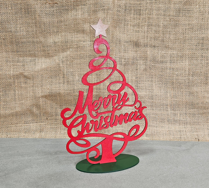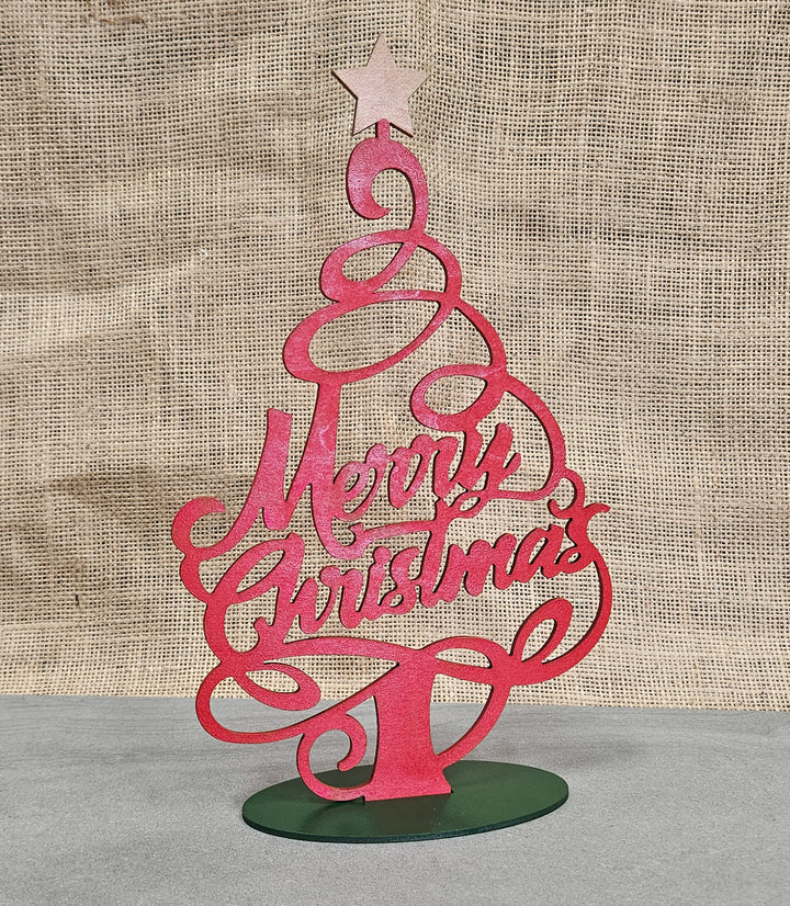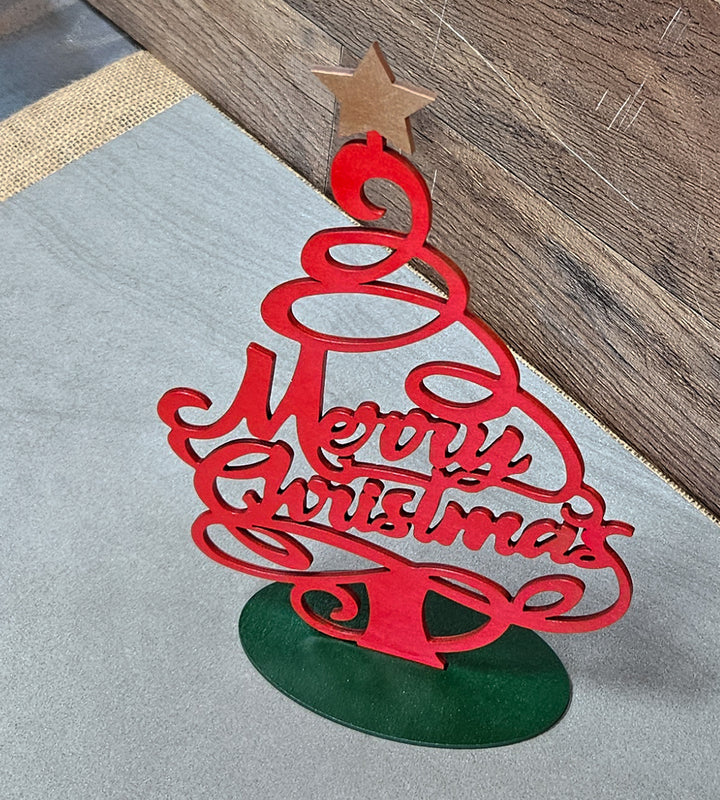 It is perfect for those who appreciate the delicate artistry of holiday decor. The lightweight nature of the wood makes it easy to display and reposition as needed, allowing you to find the perfect spot for it in your home. Whether you're decorating for a festive gathering or simply want to add a touch of Christmas cheer to your everyday surroundings, this red Christmas tree with its merry message is an ideal choice. Celebrate the season with this enchanting piece that embodies the spirit of Christmas and brings a smile to everyone’s face.